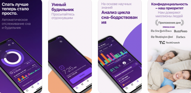 - Sleep Cycle: Использует микрофон телефона для отслеживания движений и звуков во сне.